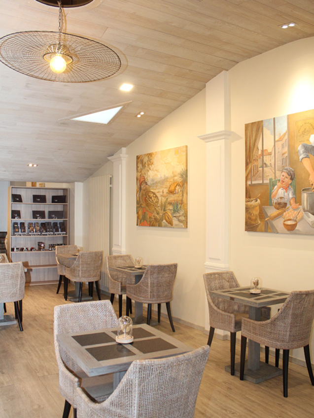 Situé à la suite de l’atelier de chocolaterie où vous apercevrez les artisans à l’œuvre, faites une pause gourmande dans le salon de thé. Vous pouvez aussi prendre le petit déjeuner. Plein de bonnes choses vous attendent.